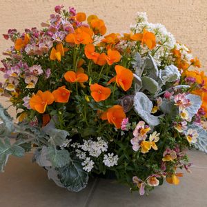 お花屋さんでオークションが あり行って来ました〜 多肉植物(アガベとか色んなの)、 もりもりラナンキュラス もりもりローダンセマム 寄せ植え 斑入りモンステラなど 38個ありましたが オークションどんどん値段も上がり 私が競り落としたのはこちらの寄せ植えだけ🥰 価格は教えませーん😆