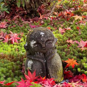 きらめく錦 その5 渦を巻き流れるような白砂の雲海 石組の天に昇る龍は 朝焼けに反射して🍁色に染る 高い雲をどんな思いで眺めている のでしょう🍁🤔 (´^ω^`)チョットナニイッテルカワカラナイ ですね。(笑)😓 圓光寺 小高い山の上からは まるで🍁全体が日に染った雲のように見えます。 水琴窟の張りつめた美しい音色 杉苔の上で微笑む石仏 散り始めた🍁が名残惜しそうに寄り添っていました。 池泉回遊式庭園の裏山は東照宮 尼寺に学校を建てた家康公を讃え 歯が埋葬してあります。 見晴らしの良いこの場所まで訪れる人はわずか 訪れた時はこの景色を楽しんでくださいね。 先ずはネットで予約を入れてから (﹡ˆ﹀ˆ﹡)♡♡♡