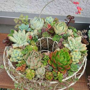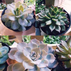 植え替え待ちの子達をぶっ込み寄せしました🐦 初夏の淡い色の多肉ちゃんもかわいいな🌞🐠✨