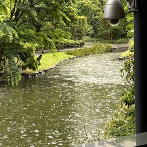 冷たい雨にあって雨宿り カフェから見える木々はイキイキしていました
