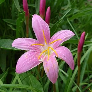 こんにちは✋ 💠サフランモドキ・ゼフィランサス💠 雨粒がついて🩵 少し涼しげな感じです 雨の日に見ると ピンク色が 鮮やかに見えます 8月10日🚶♀️で 撮影しました📱✨️