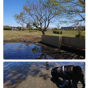 今日は、これは、数日前の青空がきれいだった日。 朝早くまで雨が降っていて一番水はけが良いはずの砂を沢山いれている小さなグランド。 池のように見えるのは、水溜まり。この公園で一番水はけが悪いようです。でも、このちょっときれいな、池のように見える 光景が好きです。 青空 新緑 水面 ちょっと下のは、この素敵な光景をペチャッペチャッ頂いてる野蛮なやつ めっちゃ邪魔 でも、合成しても入れたくなるやっちゃねん。