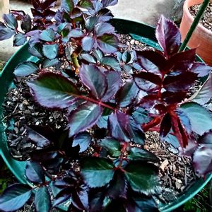 こんばんは~😃🌃 お疲れ様です~ ☝️…🌹新芽が出ると黄色くなって落ちてしまう様になったので去年、地植えから鉢植えに変えてから元気になり今、一番早く葉っぱがしげってます🙌~それぞれ葉の色も違いますが……こちらは深い赤青緑🤔😁の照り葉でとてもキレイです😊迎えたのは何年も前なので名前……判りません🙇♀️ ~良い週末を~➰👋😃