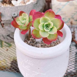 柔らかい色合いが素敵な エケベリア・ヒアリナさん😊💗 夏に根腐れで✂️し 小さくなっちゃいました😊💧 特徴である 💗型の葉っぱちゃんが重なるのは 一体 いつの事やら…😊💧💧