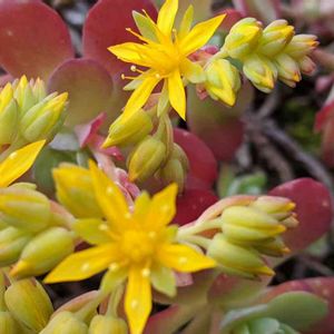 薄化粧(セダム属)が厚化粧になって→お顔が乱れて花芽を出して→黄色い花を咲かせました💗 「薄化粧は花後に枯れる」という情報をたまーに見ます👩🏻💻 「新型コロナウイルスに花崗岩が効く」くらい信憑性のない情報ですね💦