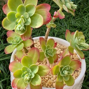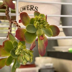新入りミニ多肉ちゃん! 姫花月と、もうひとつはなんでしょう?エレガンス?? 2つ目の薄化粧がもうすぐ開花しそう♡ 1つ目の薄化粧も同時に2回目の開花しそうだったのに、咲く前に花の所だけ枯れてしまったみたいで😭寒いから? ということで、 2つ目薄化粧はリビングに避難して開花待ち🥺