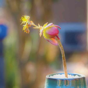 多肉ちゃんも春の気候に 誘われてお花をつけました🌼 陽当たりは暑いくらいの 春の陽気です☀️