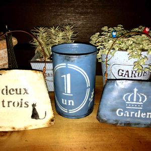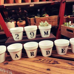 昨日、今日でリメ鉢作り( ˊᵕˋ* ) 素焼きの鉢をシンプルなアルファベット&数字バージョンにしてみました( •̀ᴗ•́ )و ̑̑ ありきたりな感じですが…💦