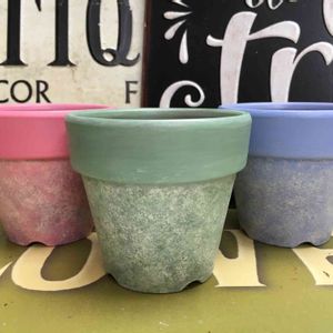 リメ鉢◡̈⃝︎⋆︎* 昨夜〜今日で2.5号鉢3個塗り塗り( •̀ᴗ•́ )و ̑̑ 今度はパステル調ほんわかバージョン3色作ってみました ( ˊᵕˋ* )