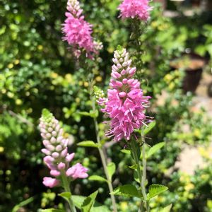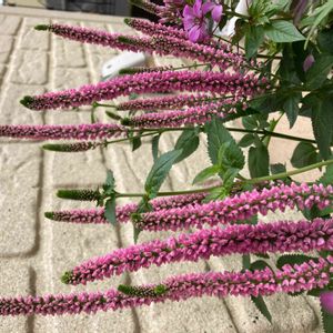 ベロニカ ファーストキス👩❤️💋👩 脇芽から二番花です 6月に咲いて,切り戻したら,また可愛い花をいっぱい 3枝にピンクの花🌸達、ツンツンあちこちに向いてます