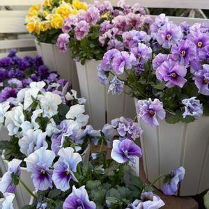 平塚弘子さんのビオラ スッキリと綺麗な発色の物が多かったです。 特に真ん中の子に(〃♡ω♡〃)キュン🩵💙 園芸店で買ったつもりで📸