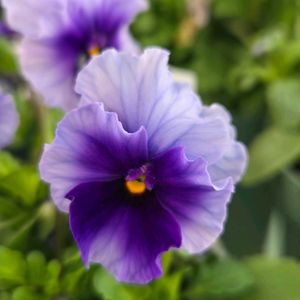 両方ともビオラ平塚弘子作品集です。 暖かくなっても色褪せることなく、安定して美しいです。 このブラック系のビオラは上の方だけパープルのグラデーションになってて、ほんとに色使いが、繊細なビオラです。 もうひとつのパープルビオラも透明感を感じる色あいで咲いてくれてます。 こちらも長く見ていられます。