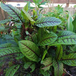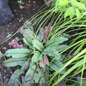🌿🌿🌿アカスジソレル (ルメックス) なんだか、ホンワカ撮れたので投稿します😀 外にあった時には虫食いだらけだったから そこを✂︎カットして鉢上げしましたー😊 (だからか貧相💦) 出窓の百均の入れ物に入って、 時期遅れのかぼちゃさんに見守られてます😅 花は見た事ないです🤗