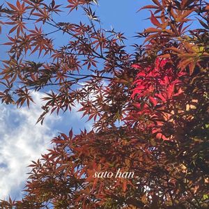 朝に見た紅葉 青空に 赤紅葉と青紅葉が 向かい合わせの家に 植えてあり一つにできない ものかと…。 🍃🍂🍃🍂🍃🍂🍃🍂🍃🍂🍃🍂