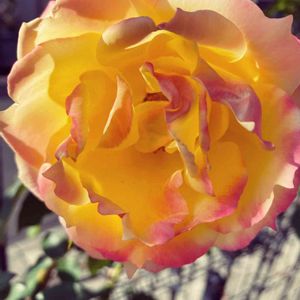 🌹トロピカルシャーベット 紫外線で黄色からこんなに赤くなります😊 青空がよく似合う薔薇です🌹