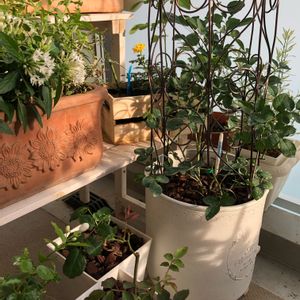 何日かぶりにお日様が出ました♡ 母上からピエールの挿木苗(2年目?)とケルビーノ1年生をもらいました。そしてレイニーブルーにオベリスク(ハンドメイドのものを購入)をつけました。週一の消毒と日々の葉っぱチェック頑張ります。