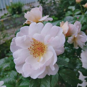 おはようございます☀ 今日も暑くなりそう💦 今朝の薔薇🌹 コラージュにしました💕 左上 アンブリッジローズ 右上 プシュケ 中 ルシエルブルー 右下 ヘレン 左下 ケルビーノ 上のアプリコットのふたつは半日陰の裏庭に植えていますが、ゆっくり綺麗に咲いてくれました✨✨✨ ルシエルブルーさんは昨年夏にお迎えしてすぐに地植えにした子ですが、よく咲いてくれています💕ただそんなに大きくならないみたいなのでPot向きかもしれないですね✨ 左下のケルビーノくんは鉢植えにしてましたが、新しい花壇に移植しました。結構な横張りタイプ!お隣のクィーンオブスェーデンさまとは対照的な樹形です😆✨ 右下のヘレンさま💕花壇でERクレアオースチンの隣に植える子を探していて、なかなか決まらずはなはなショップさんに電話相談したところ、自然な扇形樹形になり花壇に向いていると勧められた薔薇です✨なんだか乙女チックなお花が咲き出しました💖