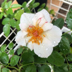おはようございます☔️ 今朝は残念な雷雨⚡️ 咲き始めた薔薇も今日はがまんの一日になりそう デルバールローズのケルビーノさん 雨の中咲き始めています✨✨✨