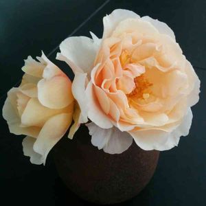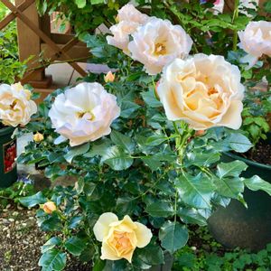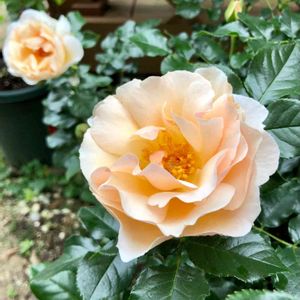 ケルビーノ お花屋で見かけて衝動買い😅 初心者で管理もできるか心配なのに、バラが増えていく~ バラ病だな、、 新苗で二つ咲いてカット レモンスパイシーなすごくいい香り😍