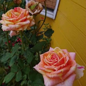フェスタ🌹 軒下で咲いてます🎵 この子レイズベッドの所に植えてあるから、背が高くて咲いてても見ずらい😆 冬に場所移動しようか🤔 その前に保険作っておこう🎵