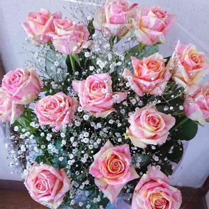 母に頼まれて、お世話になってる方のお誕生日のプレゼント💐 いつもお世話になってる薔薇屋さんにお願いしました💐 フィスタ🌹とカスミ草と🎵 これから届けに行く前に(*^-^*)