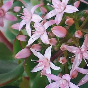 実家の母の金のなる木、まだまだ咲いてます🌸 咲き進んだお花の中心が赤くなってる😍 よ〜く見ると蕾がカワユイ💕 昔懐かし飴玉見たい🍬🍬