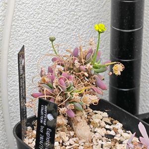 定時退社のつもりが…… 冬型塊根のオトンナたち ①クラビフォリア ちょっとゴチャついた写真ですが、新葉も出始め 花も咲きました。 ②ユーフォルビオイデス 二株のうちの一株。こちらも①と同様です。 ③④我が家で播種したカカリオイデス 花芽は上がってきません。
