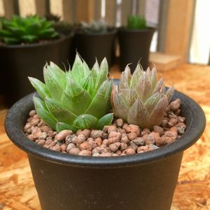 夜な夜な頑張って植え替えてます😵💦 100均ハオを上回る、65円(税別)ハオを見つけました😲 ホームセンターの多肉バイキング、子どもが「これがいいんじゃない?あっ!こっちの方がきれいな形だよ!」と案外ノリノリでした😆多肉男子になるんだよ…。 水色の鉢のハオは6月にイベントで買ったものです。四角いセメント鉢にカッコよく植えてあったけど、ちょっと元気がないので植え替えました。 株分けのつもりが、太根を共有していたので夜中にやるには手に負えず、小さめの鉢で💦 春にまた植え替えだ!