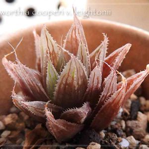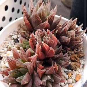 ハオルチア、レイトニー。全然色づかないロゼアに比べてこっちは余裕の赤。環境としては同じはずなんだけどなー。レイトニーと同じようにストレス色ならロゼアだって色づくはずなのに。ともあれ、ストレスによる色とわかっていても、レイトニーは赤であってほしいのはわがままかな? 真ん中の株がしばらく根をやられて萎れていたけど、なんとか持ち直してきた。まわりにはたくさん子吹きしているし、立派な大盛り群生株にしたい。