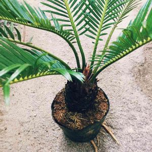 【蘇鉄】 2ヶ月おきにやってる植木市に行ってみました🌱 今回はなんとなく気になってた蘇鉄をゲット‼️ 売ってた👴🏼叔父さんが親切に色々教えくれて〰蘇鉄は成長が遅いとの事。 この子でも10年以上は経ってるらしいです😮 根がはみ出してたので大きめの鉢に植え替え‼️ 気長に成長を楽しもう😆