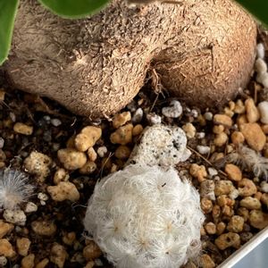 Mammillaria plumosa 白星 群生株なのに2個しか咲かん😜