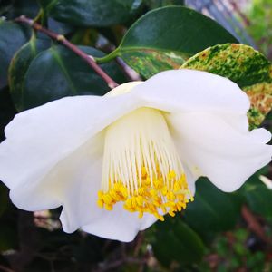 今年2回目の積雪☃️ 寒いわけだ🥶 これは昨日の椿さん! この椿は🐦につつかれるだけでなく、 とにかく綺麗な姿を見たことないのです😅 こんなふうに縁が茶色く変色😆 いつかは美人な堂々とした姿が見たいわ🤩 葉も斑入りなのだけど、 こういう風に普通のとこもたくさんあります😃