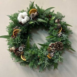 X'mas✨🎄✨リース フラワーアレンジメント サツマスギ、ブルーアイス、ブルニア、 エリンジウム、バラ、 スターチス、ユーカリ