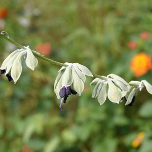 ディスカラーセージです.•♥ 地味です(//∇//) 葉の表裏、萼とお花のコントラスト🐼が個性的でツボにじわじわきます(*´艸`) 𓂃𓂂𖡼.𖤣𖥧𓈒◌܀ ꕤ ディスカラーセージ(サルビアディスコロール) ꕤ コチアダイアモンドダスト