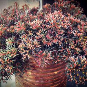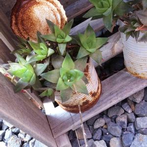 雨ざらしで放置してたハオルチアですが、花芽も伸びて元気で丈夫です(^^)缶もサビサビで好きな感じです。