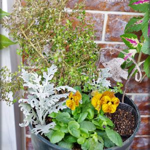 未完成の寄せ植え、タイガーアイそっくりさんのビオラの隣に何を植えようかな