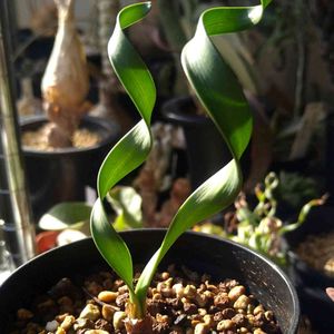 フォトコン懸賞金で買ったキルタンサス·スピラリスが届きました。🙌 休眠中とのことでしたが、ねじねじの芽がチョロっと出てました。もう水やっていいのか?( ´-`)