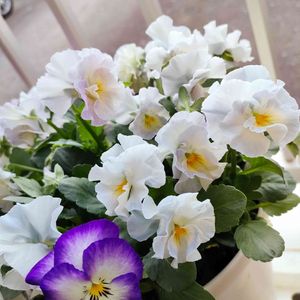 おはようございます〜 朝から晴れて気持ちの良い天気です✨✨✨☀️ 💗虹色すみれとパンジー💗 虹色すみれは茎がぐっと伸びて可愛い咲き方💕 パンジーは名前わからないけど、淡い色合いが好き、花びらがヒラヒラして花数が増えてきました🥰