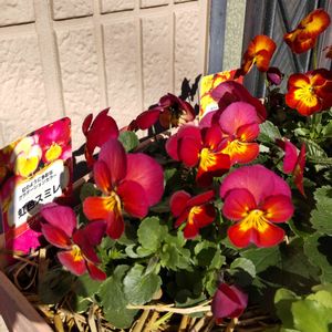 2枚目です😊🙏 🌸虹色スミレ・スイートラブ🌸 大好きで毎年虹色スミレをお迎えします💓 今シーズンは、 このスイートラブ💗とラブリームーン💛 の2色です。 この鉢にはチューリップ・サネ🌷の球根8個が植えてあります。 こちらも春が楽しみです💕