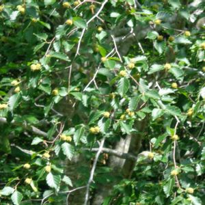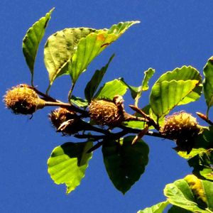 庭に雑木を植えて頂いたうちで~唯一花を見ることがなかった木デス‥🌳 確かイヌブナと庭師さんが言っていた‥🤔!? 樹皮はブナの木なんだよね~葉脈も10本くらいだし‥🙄!! 花が咲いて実がついたら分かるよね~👀ルンルン🎶 そして、、、15年目‥🌤⛈🍃🍂 今年の春(3/21)、葉の展開と同時に花が咲いているのを見つけました(1枚目‥中段左と3枚目左)‥(^^)v 1ヶ月後には果実が出来ていました(1枚目‥右、3枚目右) 嬉しくて~見上げるみること2週間…何とブナの木を、邪魔な枝を大きく伐採するというのです‥😢 テレビの写りが悪いのは~ブナのせい…だと‥🤭 お願いだから実のついた枝だけでも残して‥🙏 伐採した沢山の果実の枝を観察することが出来ました(4枚目) 秋、1本残してもらった枝についた果実が熟し4裂~三角形の2個のタネを弾き飛ばしました…殻斗とタネを広い集めました(2枚目)‥🌰🌰 ブナのタネを株元に埋めてみました~発芽するかな‥🤔 ※ 3年前(2020.11.7)~イヌブナとして投稿しました(5枚目)‥(汗)m(_ _;)m 今年やっと確認出来ました‥👌🎶 エリマキトカゲみたいな~イヌブナの芽出しが見れると良いなと…ずっと思っていたのに、ちょっと残念カナ‥😢 ブナ(ブナ科) ブナ属