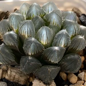 疲れたので、ハオルチアの窓を✨ 巨大赤線レンズの青みがかった葉が好き🥰