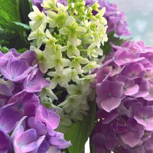 紫陽花ブーケ。 紫陽花って色々な種類がある。まったく目を向けてなかったけど、みんな違う。