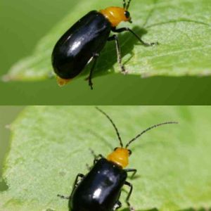 「クロウリハムシ」 葉っぱの上でよく見かける 小さい甲虫。 艶々ですね。😄