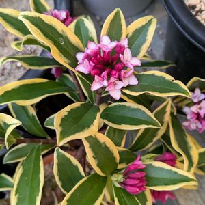沈丁花の花 前島に花がつきました🌸 斑入りの葉っぱにお花が 映えてるね✨