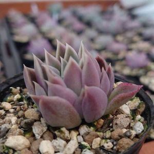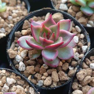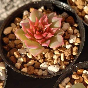 エケベリア オリジナル交配種 おばんです🤗 今日は最高気温が二桁いかないとニュースで見たのですが ウチの多肉ハウスは20℃近く、とても暖かかったです😅 これ温度計がバグってるのか?🤔 百均じゃないんだけどな・・・ そんなこんなで、小一時間の作業でも ダラっと汗が吹き出してきました😅 暑いね。 さて、今宵も今宵もオリジナル交配種です 個人的に赤色がハッキリと出た子で気に入ってます まだまだ小さいですが、大きくなると形が良くなるハズ!ハズです!そこは信じてます(笑) まずは、はよ根が定着してほしいとこです😚
