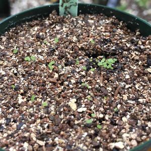 種まきしてから3ヶ月と11日目! まだまだちっちゃいけど特徴が出てきてかわいい🥺 外に出してからキノコバエの幼虫に根を食べられて数が減っちゃったけど大きい子は新しい根を出してなんとか生き残ってくれた😢