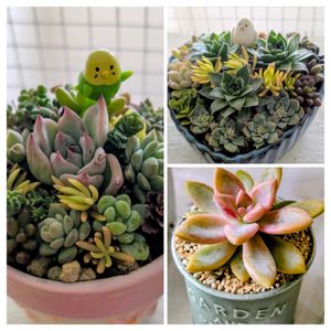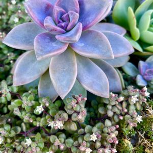 鉢減らしの寄せ植え ゴースティ(桜牡丹)の子株をかっとして入れた🌱 ブルーエルフは頭にできてた子株をカットして親の隣へ ブルーブリトー増えすぎて困ってきた… セデベリアって強いのね✨ 何にも気にしないで見た目で買ったらブルーエルフもセデベリアなのね🤣