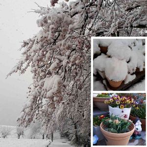 今朝、起きてビックリ雪になってました😱💦 昨日はイキイキとしてた花達も、今日は雪で埋もれて可哀想な状態に😰 咲き始めた桜も雪の重さで…お気の毒だわ 雪の降った方、雪道気をつけましょうね