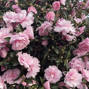 お出かけ先の山茶花 薔薇のようで綺麗〜😍
