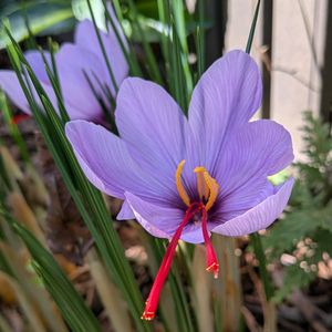 こんばんは〜 日中は、良い天気でしたが…朝晩は冷え込んできましたね~💦 1️⃣サフラン 赤い蕊が特徴です! 2️⃣秋咲きクロッカス スペキオスス 先月、球根を植えつけ ましたー💜